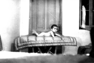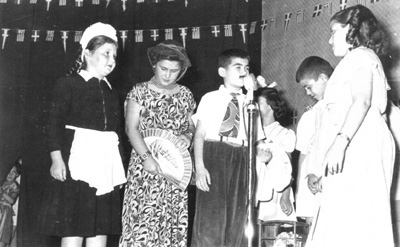 Αρχίζοντας τη θεατρική μου σταδιοδρομία στο σχολείο – στη δεύτερη τάξη του Δημοτικού (πρώτος από δεξιά). Είχαμε φέρει από το σπίτι μας τον ψάθινο καναπέ. Μετά (του Αη-Γιαννιού) τον κάψαμε για να πηδάμε τη φωτιά. |