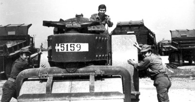 Στο Ειδικό Τάγμα Μηχανικού, στη Λάρισα. Εκεί μάζευαν τους (κακο)χαρακτηρισμένους πολιτικά και τους αναλφάβητους.